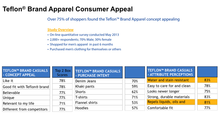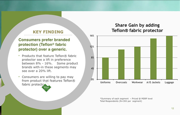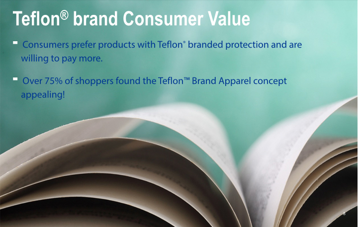 Adding TeflonTM Brand Apparel to your company's brand provides a confidence in durability, repellency, stain resistance and increases name recognition all the while being green and environmentally friendly with the latest fabric technology.